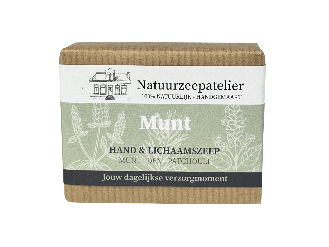 Muntzeep is een reinigende en verzorgende zeep met een fris verkwikkende geur van munt, den en patchouli.